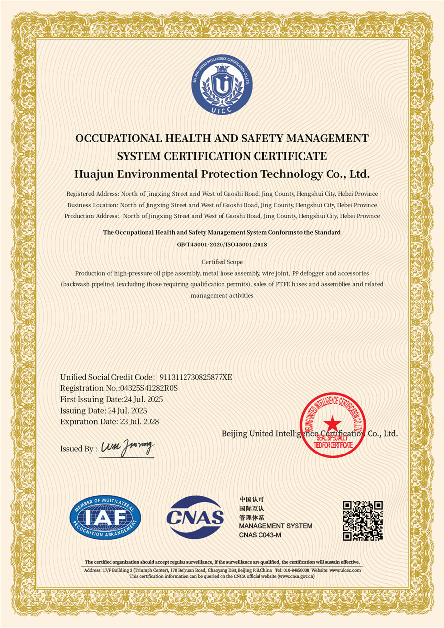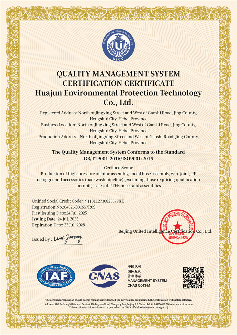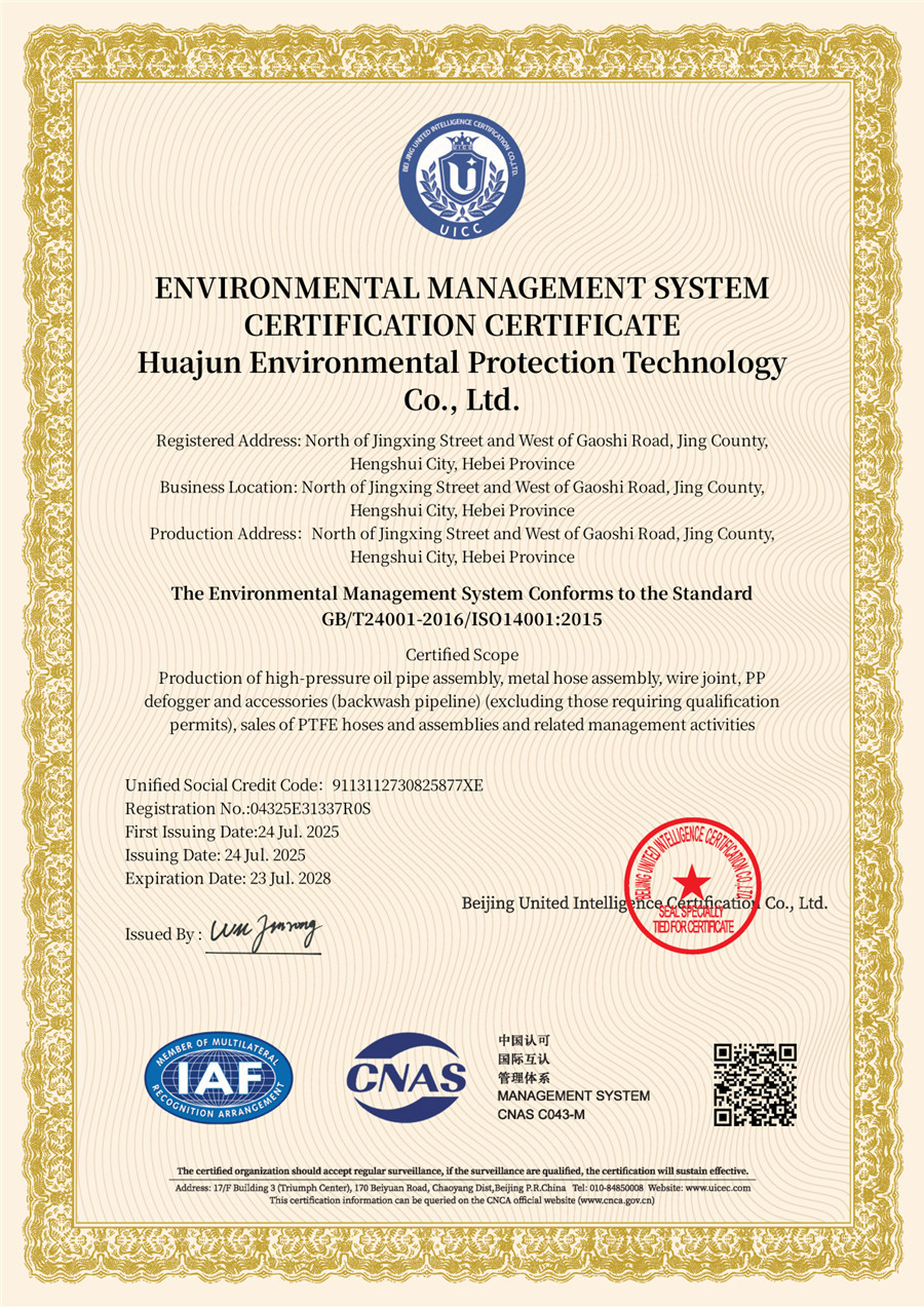 Huajun Environmental Protection Technology Co., Ltd. is committed to maintaining the highest standards of quality and environmental management. Our certifications reflect our dedication to excellence and compliance with international standards: